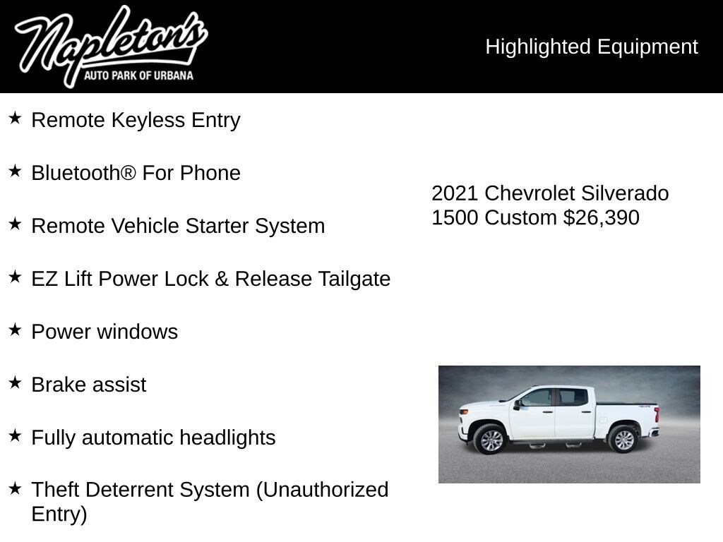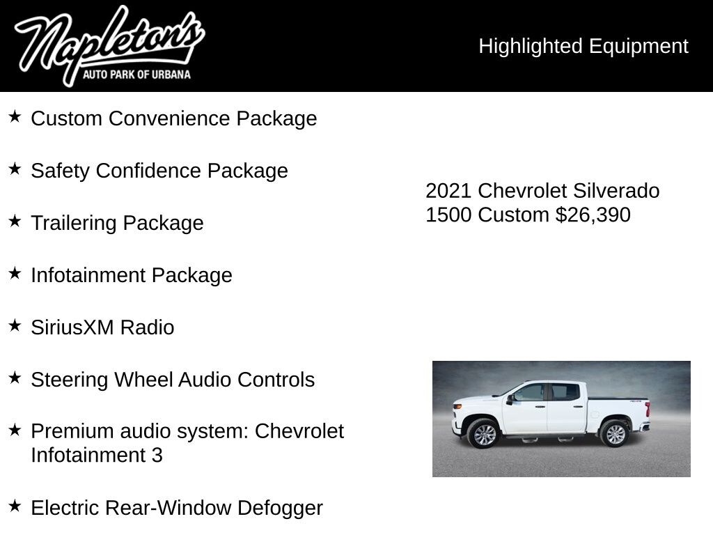 Discover the versatile power and modern convenience of the 2021 Chevrolet Silverado 1500 Custom. This rugged and capable pickup is the perfect companion for your active lifestyle, whether you're tackling tough jobs or embarking on thrilling adventures.