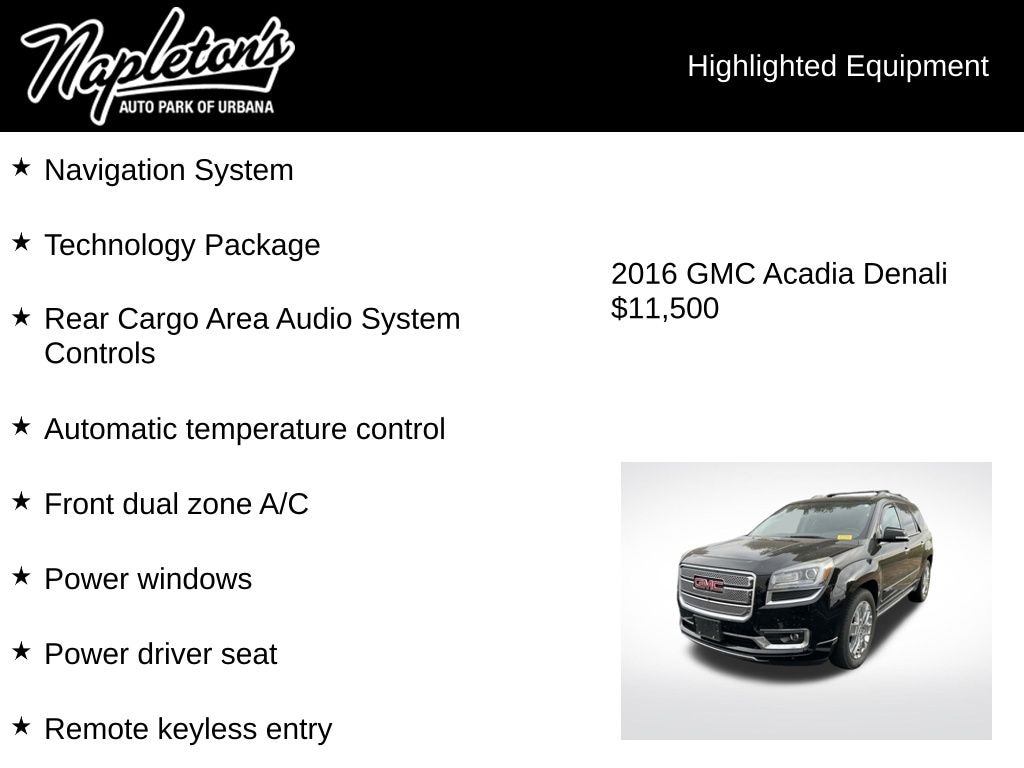 Take a look at this stunning 2016 GMC Acadia Denali Technology Package - a true masterpiece of engineering and design. This SUV is the perfect blend of power, luxury, and cutting-edge technology, making it the ultimate choice for the discerning driver.