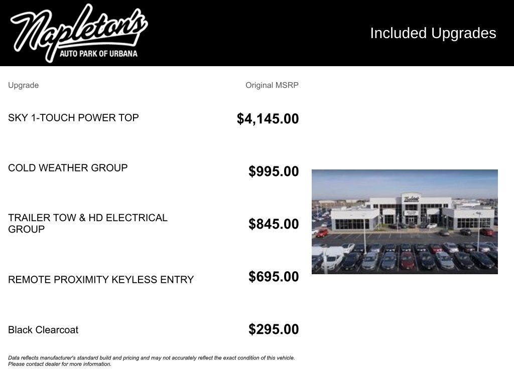 This Jeep is great in the snow and fun in the sun! The Sky One Touch power top is an amazing option that allows you to open or close the roof in seconds, while still having the nicer look of the hard top and you don’t have to mess with the hassle of removing the heavy pieces. I’ve put almost 50,000 miles on my 2023 and haven’t had any issues whatsoever with the vehicle. Great roomy vehicle that’s fun for off roading, or just cruising around.… - 5.0