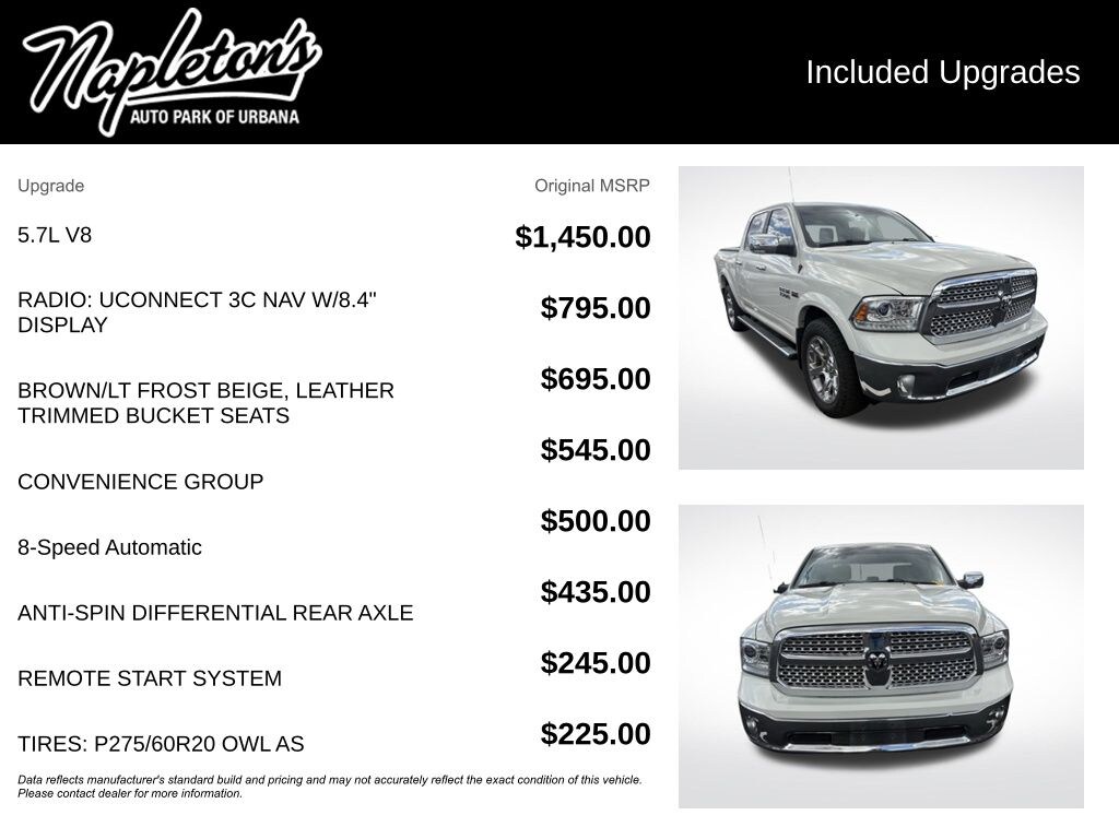 2017 Ram 1500 Laramie Pearl White HEMI 5.7L V8 Multi Displacement VVT 4WD 8-Speed Automatic