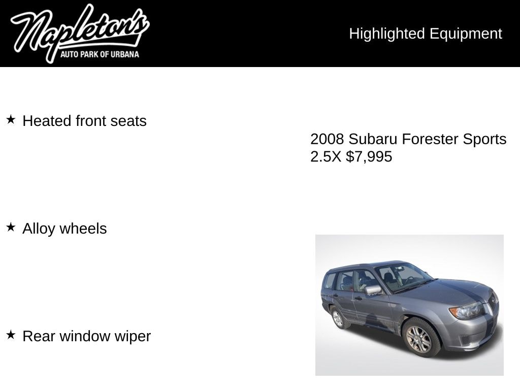The 2008 Subaru Forester 2.5XT Sports is a powerful and versatile SUV that delivers an exceptional driving experience. With its turbocharged 2.5L DOHC engine, all-wheel-drive capability, and host of premium features, this Forester is poised to exceed your expectations.