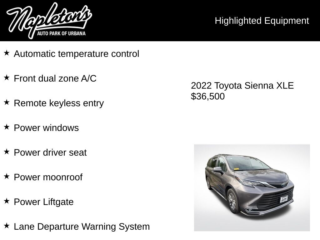 Elevate your driving experience and make the 2022 Toyota Sienna XLE your family's new best friend. Contact us today to schedule a test drive and discover the true magic of this exceptional minivan.